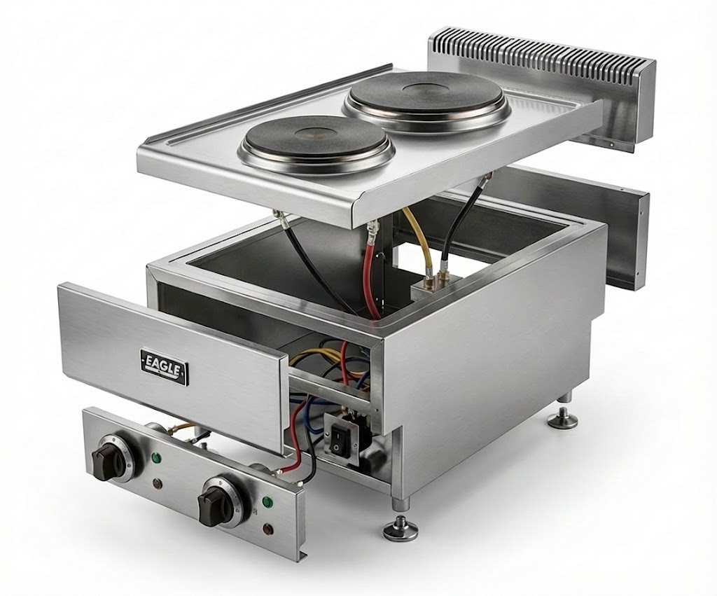The Electric European Range is designed for professional kitchens, delivering stable heat performance, energy efficiency, and reliable operation. Suitable for models ER2-40 and ER4-60, it features a durable stainless steel construction, easy-to-use controls, and consistent heating, making it ideal for restaurants, hotels, and commercial food service environments.